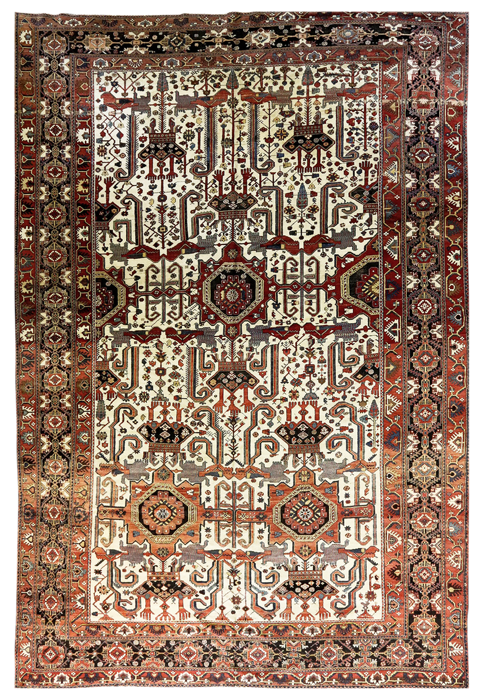 Anything handmade has inherent characteristics that are unique to each weaving because it is made by hand. Although the pattern of a 3x5 rug is the same as a 12x15, the two pieces may look slightly different because the pattern is larger in the larger rug.