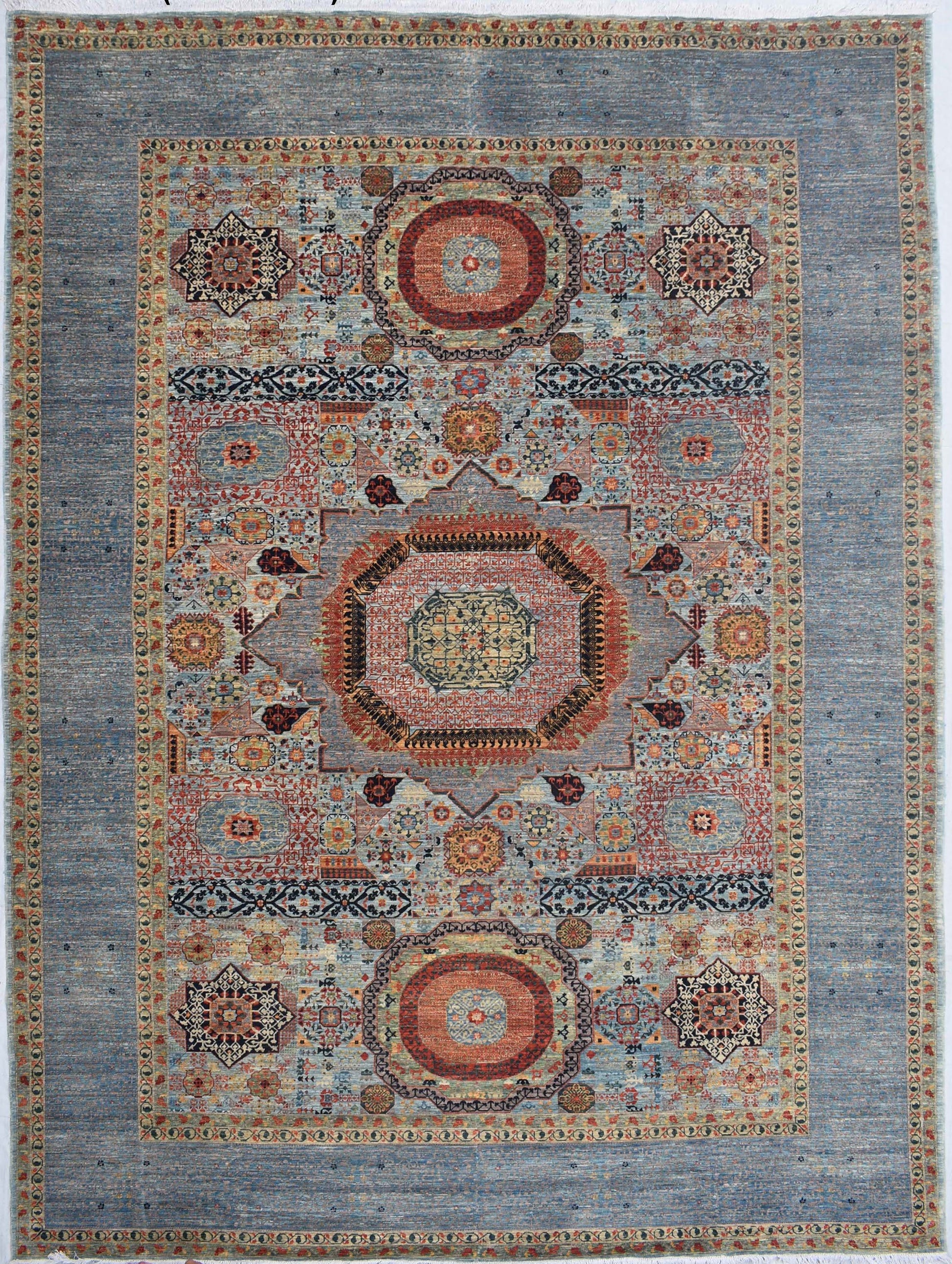Anything handmade has inherent characteristics that are unique to each weaving because it is made by hand. Although the pattern of a 3x5 rug is the same as a 12x15, the two pieces may look slightly different because the pattern is larger in the larger rug.